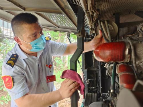 新區(qū)公司1780車駕駛員白延奇駕駛的19路線,由銅山新區(qū)總站發(fā)往徐州火車站,全程接近30.5公里,途徑居民區(qū)、學(xué)校眾多,每天要跑3趟,6個(gè)單程,不堵車的時(shí)候一個(gè)單程需要一個(gè)小時(shí)。“由于工作的特殊性,即便天氣再熱我們也不敢多喝水,早晚高峰堵車至少得1個(gè)多小時(shí)才能回到主站,只有到終點(diǎn)站才能多喝幾口水,抓緊時(shí)間上個(gè)廁所?!?/span>駕駛員白延奇這樣說道。為了給市民乘客提供溫馨、舒適的車廂環(huán)境,每天朝陽(yáng)還未升起,白延奇就到達(dá)停車場(chǎng),檢查車輛狀況、擦拭發(fā)動(dòng)機(jī)、刷洗輪胎、打掃車輛衛(wèi)生,在確保“五凈一亮”的同時(shí),對(duì)車廂進(jìn)行全面消毒,不一會(huì),白延奇的額頭就布滿了汗珠,身上的行業(yè)服早已濕透,緊緊地貼在皮膚上。