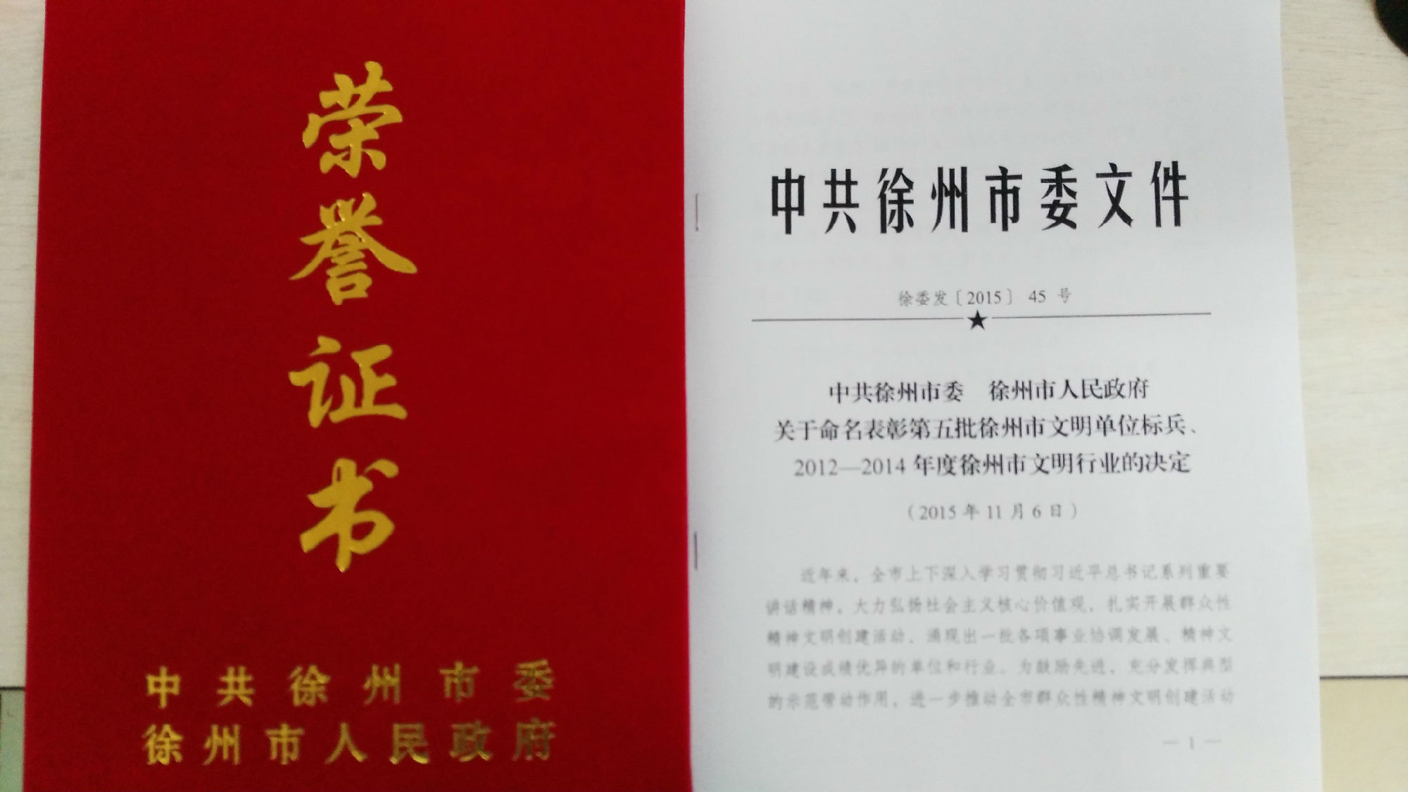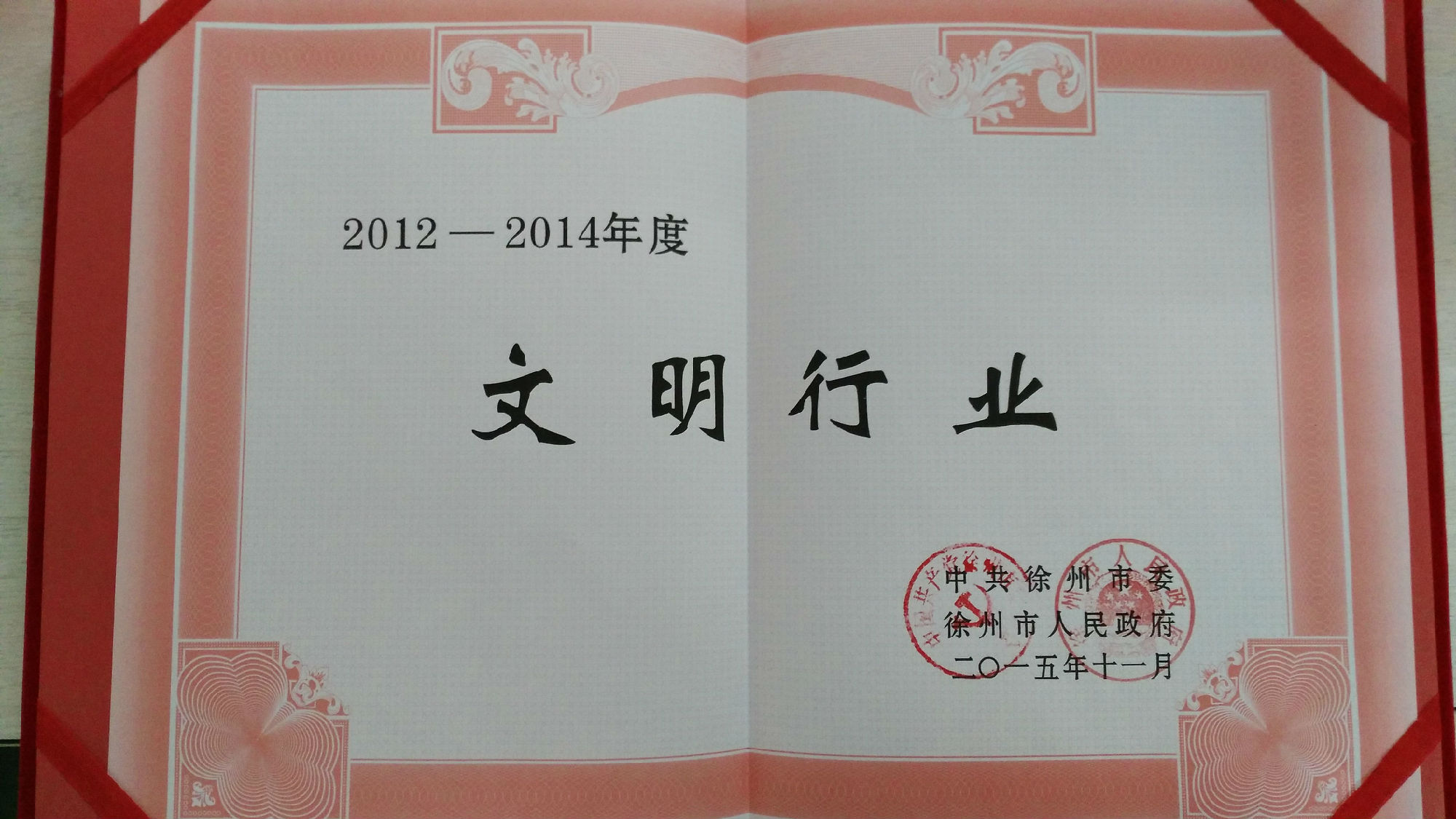 公司榮獲市2012-2014年度文明行業(yè)榮譽(yù)稱(chēng)號(hào)