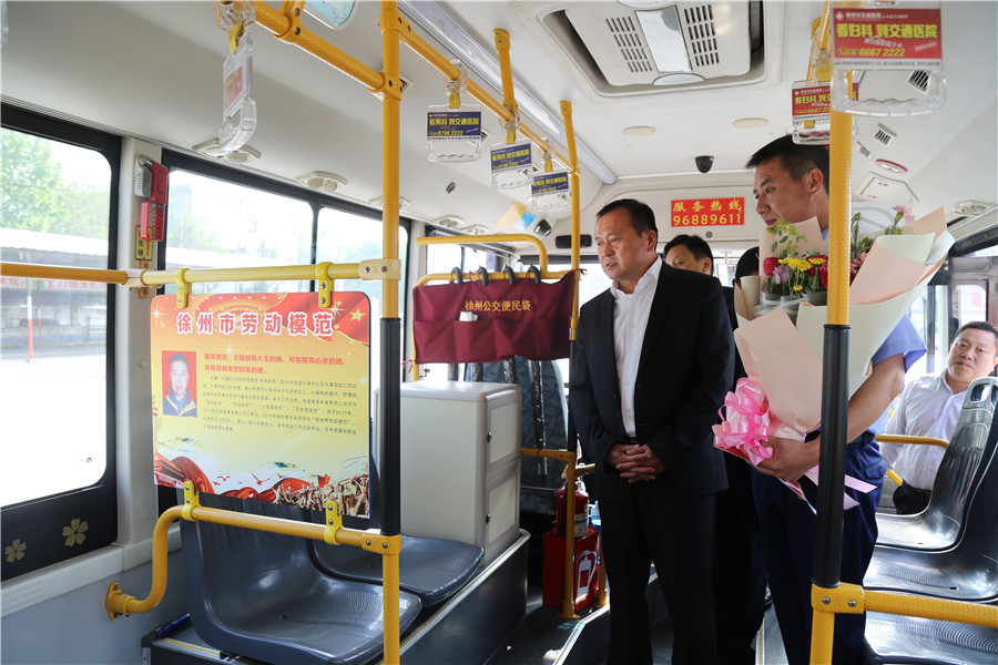 每到一處,杜總都會熱情地與勞模先進們交談,充分肯定他們在各自崗位上默默無聞、兢兢業(yè)業(yè)、優(yōu)質(zhì)服務乘客所取得的突出成績,對他們的貢獻和努力表示感謝,并鼓勵他們繼續(xù)發(fā)揮表率作用,用模范行為影響身邊人、帶動更多人,促進公交服務再上新臺階。聽說王博中午為打掃車輛沒按時吃飯時,杜總關(guān)切地叮囑他保重身體。在64路車上,得知劉艷軍的孩子最近生病住院,杜總耐心地詢問他生活上有無困難,公司一定會提供力所能及的幫助。