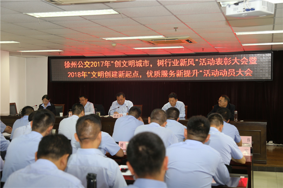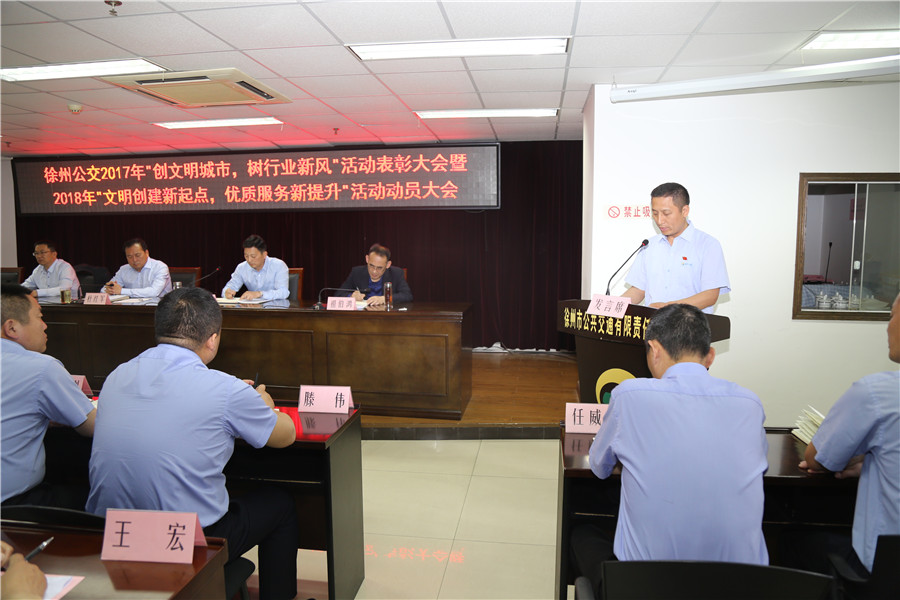 5月10日上午,有限公司召開“2017‘創(chuàng)文明城市、樹行業(yè)新風(fēng)’總結(jié)表彰暨2018‘文明創(chuàng)建新起點,優(yōu)質(zhì)服務(wù)新提升’活動動員大會”,主要任務(wù)是對全公司文明城市創(chuàng)建常態(tài)長效工作進行部署,動員全體干部員工認(rèn)清形勢、再鼓干勁,開啟文明創(chuàng)建新征程,再創(chuàng)優(yōu)質(zhì)服務(wù)新提升。公司董事長、總經(jīng)理杜紅軍,工會主席竇同銀,調(diào)研員張同剛、祖伯鴻,相關(guān)部室負(fù)責(zé)人,營運公司經(jīng)理、書記、服務(wù)主管,車隊長、先進個人代表等87人參加了會議。
