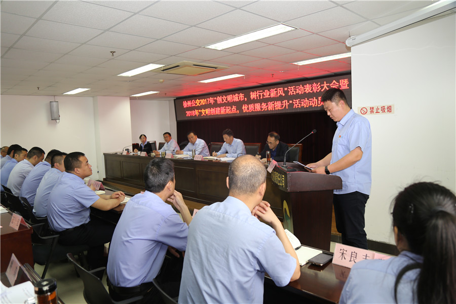 調(diào)研員祖伯鴻宣讀了《關(guān)于表彰2017年度“創(chuàng)文明城市、樹行業(yè)新風(fēng)”先進集體和先進個人的決定》。大會對獲得榮譽的先進集體和個人代表進行了頒獎。新區(qū)公司黨支部書記李強、順通公司三車隊隊長鹿小可、11路駕駛員曹瑞國等三位同志作了大會交流發(fā)言。